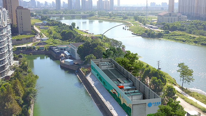治理措施:采用“源头截污、就地净化、集散结合、清水回补”的思路,采用自主研发的 “悬浮床” 及“三相增强”生物膜反应器等核心技术,运用污水模块化装置(CBS),在河道、泵站前池、污水汇集区域就近设置,为城市内河、流域断面水质达标提供保障。